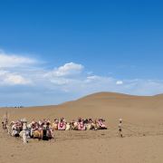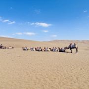 库木塔格沙漠景区-沙山公园是世界上少有的可与城市近距离接触的沙漠,也是与天池、博斯腾湖并列的风景名胜区。面积2500平方公里的库木塔格沙漠位于新疆鄯善老城南端,站在城中就能看见金色大漠雄浑壮观的无限风光。驱车而行,10多分钟便可到达景区。面对茫茫沙漠,只见沙黄天蓝、云淡风清,令来自城市中的游客们视野为之开阔,心情也顿时舒畅起来。走进库木塔格,来到旅游者和探险家的乐园!看库木塔格沙漠,拍壮阔的沙海景观。到大沙漠深处去探险,还有新鲜的沙漠冲浪在等你玩!驾乘沙漠探险车驰骋沙海,在沙谷滑行和穿梭往来。随风走进库木塔格,让您在感受惊险的同时尽情饱览大漠风光。从沙坡滑下,与沙共舞,倾听响沙的天籁之音。在驼背上给感受沙漠金色波涛来的视觉冲击和心灵震撼。