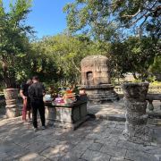 还未入寺院大门就听得誦经声阵阵,大门侧们阿姨们进进出出的拿着各种供物,进去才知道寺院正值水陆大道场,有热闹可看,我开心的很,四处溜达,师傅们开了好几个法坛唱诵,阿姨们忙碌着摆供品也无人理我,我也乐得东逛西逛看石碑看古塔看不断有人来拜拜