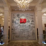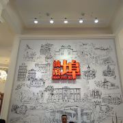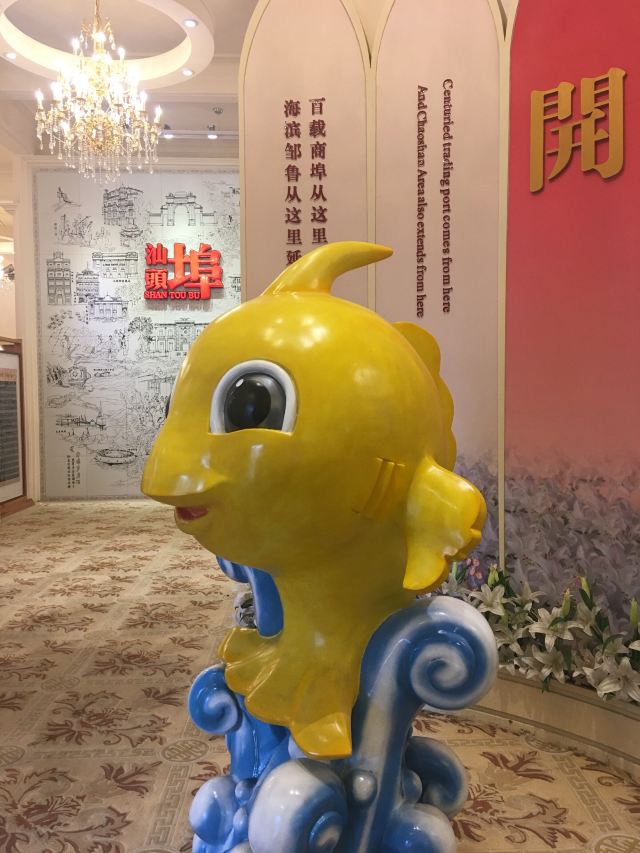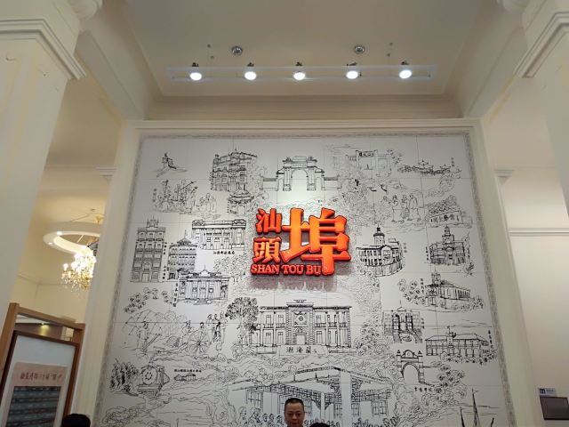 汕头开埠文化陈列馆首层是多功能展示厅,展出汕头开埠以来的资料和图片。进馆大门古色古香,有一幅巨大的开埠文化壁画,上面的“汕头埠”三个红色大字熠熠生辉。整幅文化壁画由壁砖镶嵌而成,高度达4.8米,宽度达4.2米,壁画以素描的形式展示了开埠150年间汕头政治、经济、文化的演变,代表性的重大事件,以及建筑、人物、器物都直观展现其中。开埠历史的重大人和事,都浓缩在这幅巨型壁画下。陈列馆的进门处首层右侧,一只卡通化的“鮀鮀”作为陈列馆吉祥物迎接着八方来客——汕头又名“鮀岛”,陈列馆的首层被定位为多功能展示厅,里面收集了不少名家字画,并集中展示了作为开埠文化发祥地汕头市金平区的今日风采。