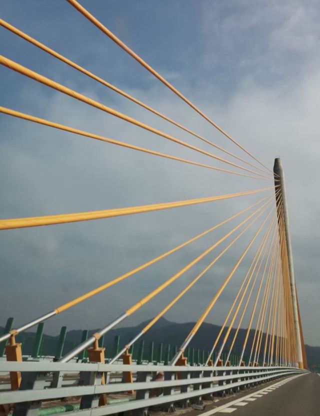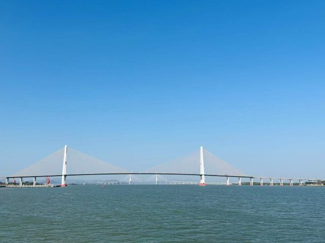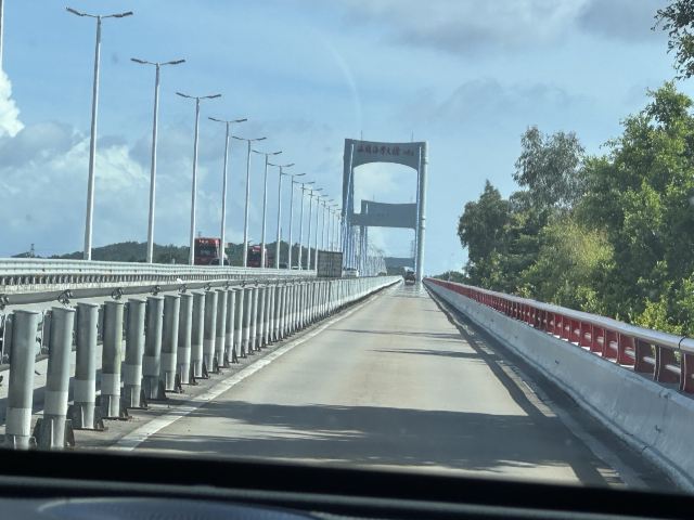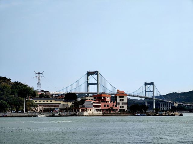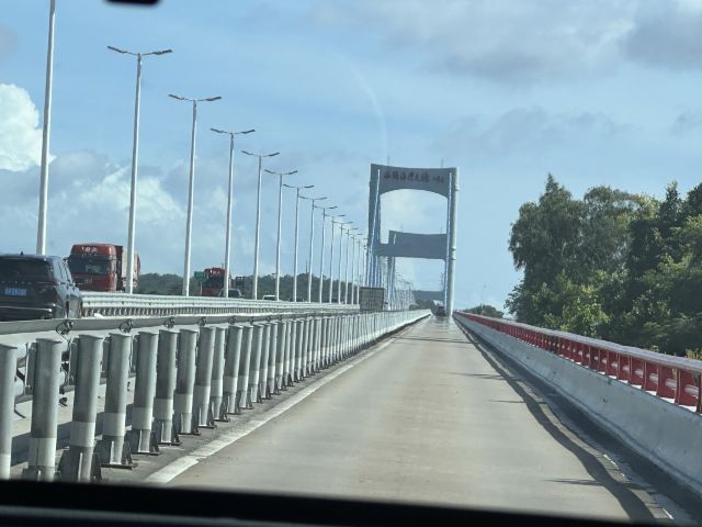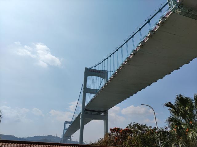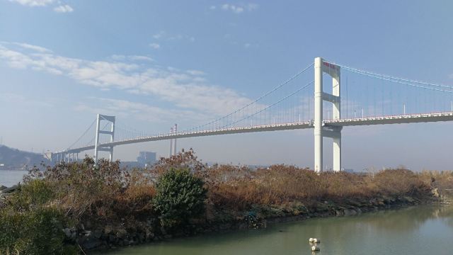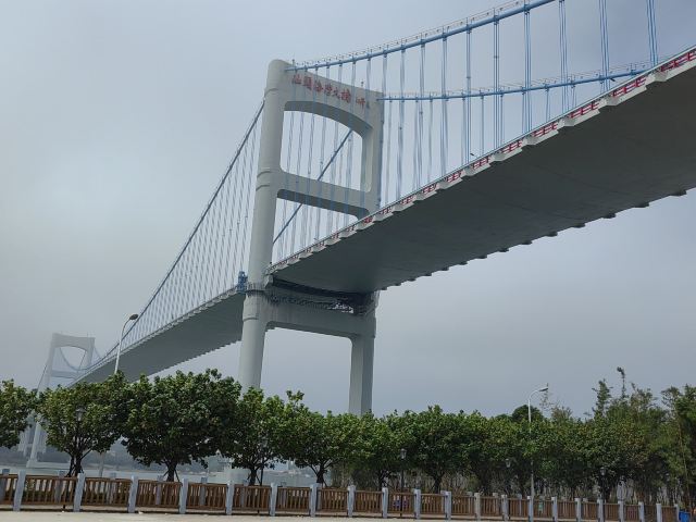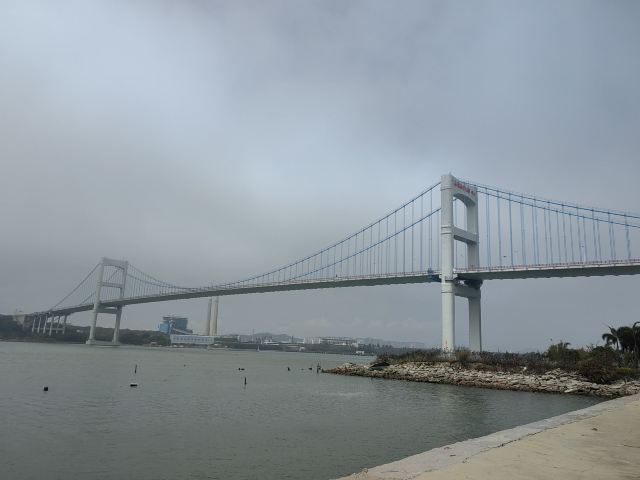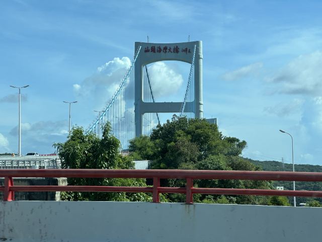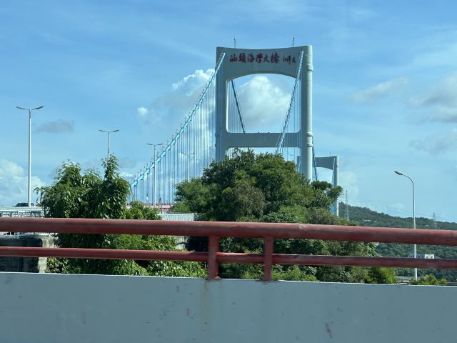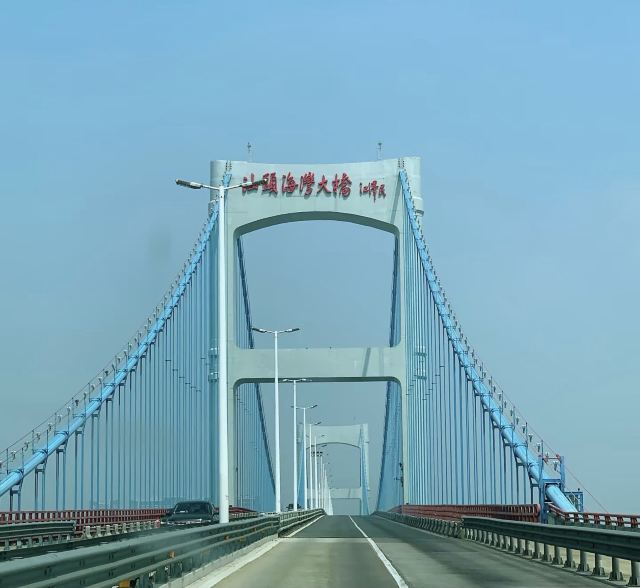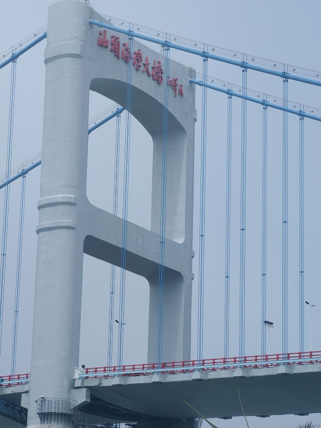 位于汕头港东部出入口妈屿岛海域处,为跨海公路桥。桥面跨越礐石海,全长2500米。由3部分组成:南面是跨黄沙湾南航道的预应力钢筋混凝土加大桥劲梁悬索桥;北面是跨北航道的预应力钢筋混凝土梁式桥;中部为横跨妈屿岛上的预应力高架旱桥。桥主孔通航净跨度452米,通航净高46米,可以通过5万吨级船舶。这座大桥是深汕两地一级汽车专用公路的配套设施,是连结深圳、珠海、汕头、厦门等4个经济特区的陆地交通纽带。