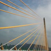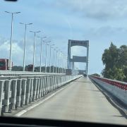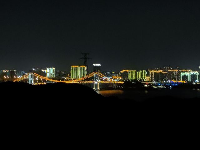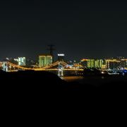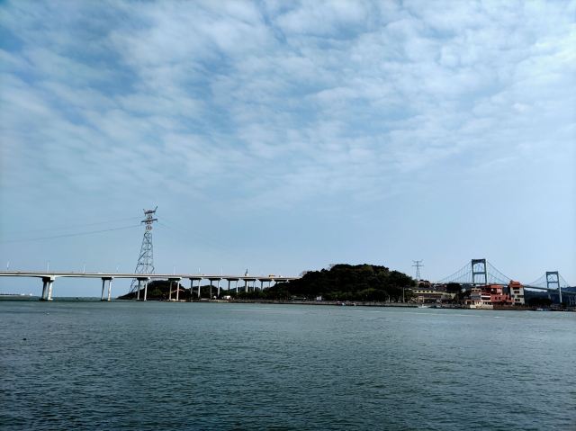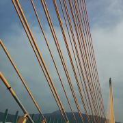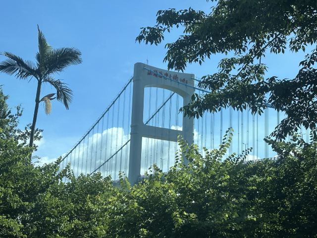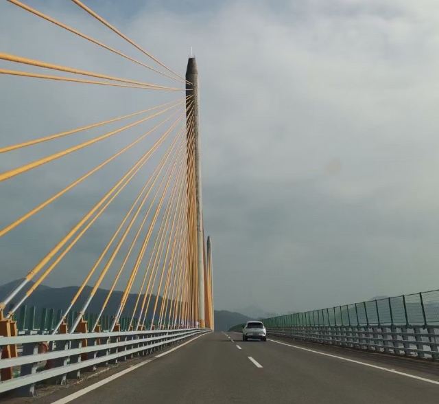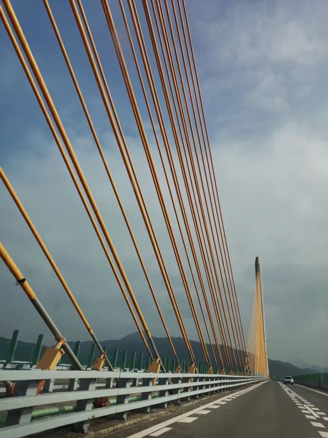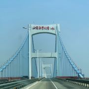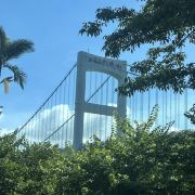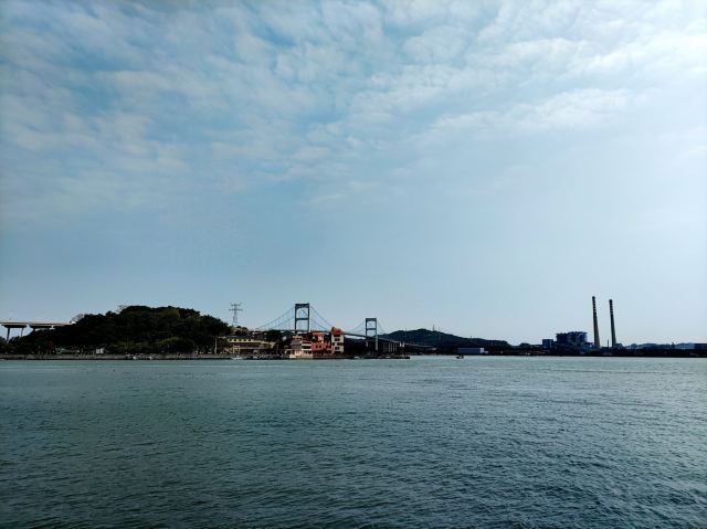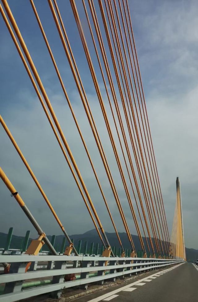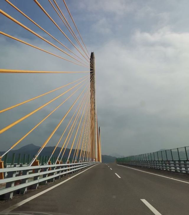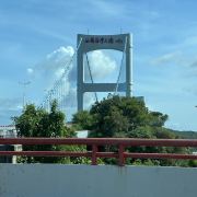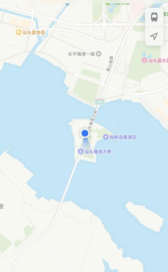 位于汕头港东部出入口妈屿岛海域处,为跨海公路桥。桥面跨越礐石海,全长2500米。由3部分组成:南面是跨黄沙湾南航道的预应力钢筋混凝土加大桥劲梁悬索桥;北面是跨北航道的预应力钢筋混凝土梁式桥;中部为横跨妈屿岛上的预应力高架旱桥。桥主孔通航净跨度452米,通航净高46米,可以通过5万吨级船舶。这座大桥是深汕两地一级汽车专用公路的配套设施,是连结深圳、珠海、汕头、厦门等4个经济特区的陆地交通纽带。