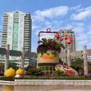 4分 满意人民广场的兔年春节花坛依旧美艳,西侧的绽放着的粉红钟花炫美成片,真美!
