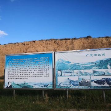 史载,广武明长城为砖石包砌,下为石墓,上面砖砌,内土筑,高6-10米,上宽4米,底宽5米,每120米建戌一座,置烽火台、敌楼,隘处置堡寨、设暗门,东西延伸与外长城相连。如今这些砖墙多处已被当地人拆下来盖房,只留下一些残留的城墙和墙垛。