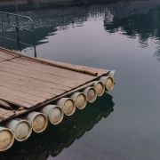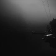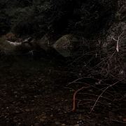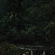 于是找出卡片打量了一下,上面写着”白水洞一号私厨,停车场入口处正南方靠江边第一栋楼”,顺着白水洞小溪往下看,果然在50米左右的地方,看到了一群建筑,靠溪边的第一栋楼赫然挂着“饭店”的发光招牌,在雨雾中显得莫名的有些温暖。那就去这家吧,就当在这个让我心情安静的地方再驻留一会。