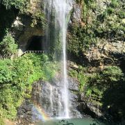 汽车慢慢驶离,白水洞在慢慢远去,回头一看,大叔还在雨中打着伞向我挥手告别。
