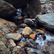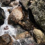 漫无目的的沿着白水洞的溪流走到最里面又折返往外走,溪中鱼可百许头,皆若空游无所依。听着歌,想着心事,等有所感觉的时候,青草已打湿了我的鞋子,而栈道边突兀出来的鲜花儿也不甘寂寞的留下花瓣,偷偷的藏在了我的衣袖上和我的头发上。抬头一看,已经到了白水洞停车场出入口的桥头,肚子也不和谐的咕咕叫了起来。