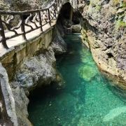 白水洞风景区在新邵县城北部十二公里处的高桥乡境内。白水洞并非山洞,而是一处峡谷风景胜地的总称。峡谷纵深10公里,据新邵县地名录记载:洞内有铸铁亭,片石庵、吸潮岩、寒碧寺、滴水岩、银涛峡、瀑布泉、镜石、落雁池等,号称白水十景。而且南有桃花庵,历为名胜。