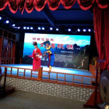 舜帝,三皇五帝之一,人类德文化始祖,孝文化的代表。用玉石精雕而成的舜帝韶山抚琴坐像,再现了当年舜帝抚琴奏韶乐,箫韶九成,引凤来仪的典故。采用声、光、电及多媒体技术,从空间的维度上呈现了湖南省丰富的非物质文化遗产分布图。