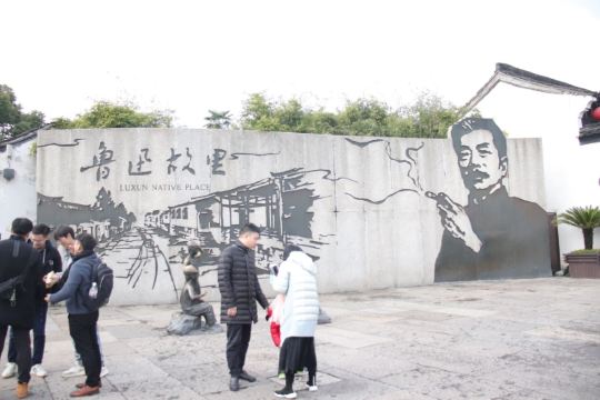 鲁迅文化广场位于绍兴咸亨酒店西面的鲁迅路口。广场采用下沉式设计,台阶层层叠叠,红花绿叶相间,草木葱郁,青石板地面突出了绍兴的传统风貌。