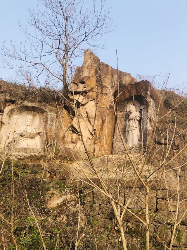 石佛峰石窟造像,为江南四大石佛之一。佛高10米,左手坠膝待与游客握手,此姿态为国内所罕见。羊山脚下临湖有石佛寺,寺四面环水,两旁孤峰拥立。此外,城隍峰、灵翠峰摩崖石刻鳞毗梯次。