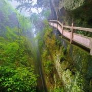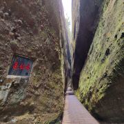 天一巷长238.8米,两侧高80-120余米,最宽处0.8米,最窄处仅0.33米。至身谷中,恍若时间隧道里的过客,可谓世界一线天绝景。不到1平方公里的范围集合了九条一线天景观群。纵横交错,巷窄境幽,依梯拾级而上,顿生九天揽月之感。望江楼、楼外楼,高处美景奔入眼底。