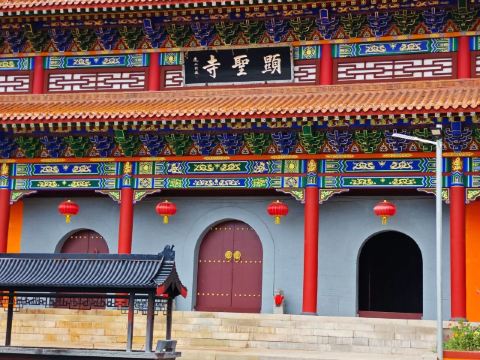 神池县显圣寺位于神池县龙泉镇,依山而建,紫檀色的围墙,金黄色的琉璃瓦,灿烂夺目,气势宏伟。