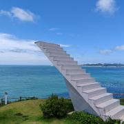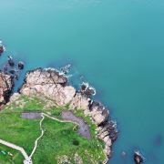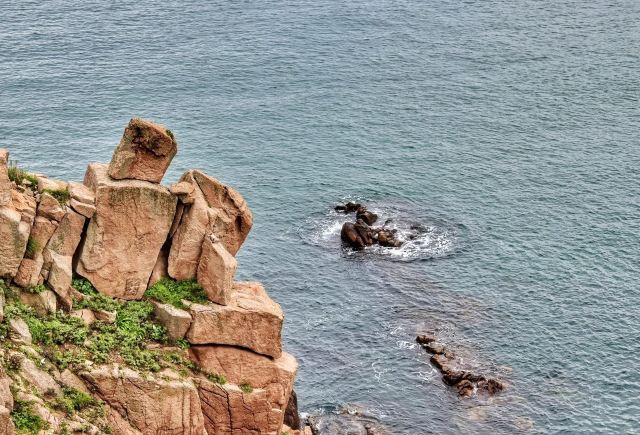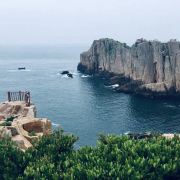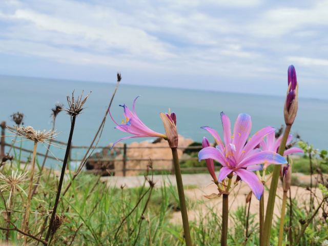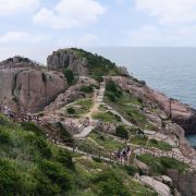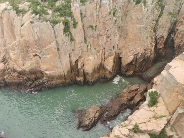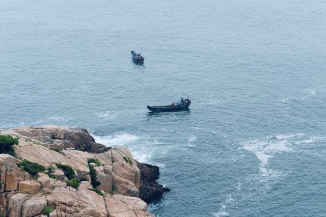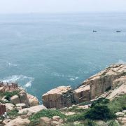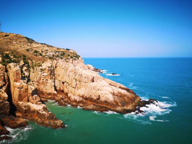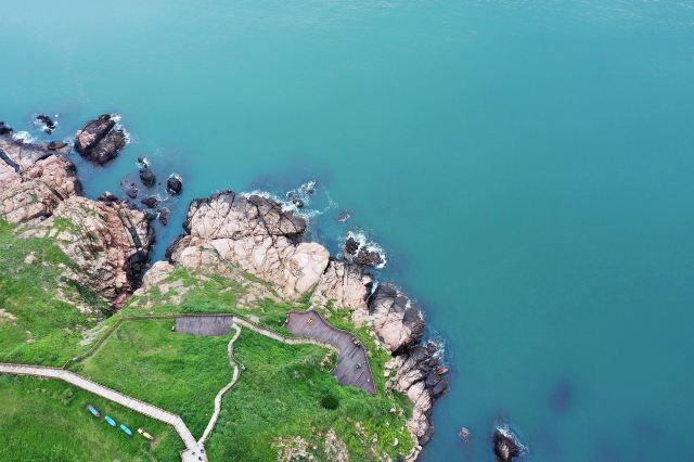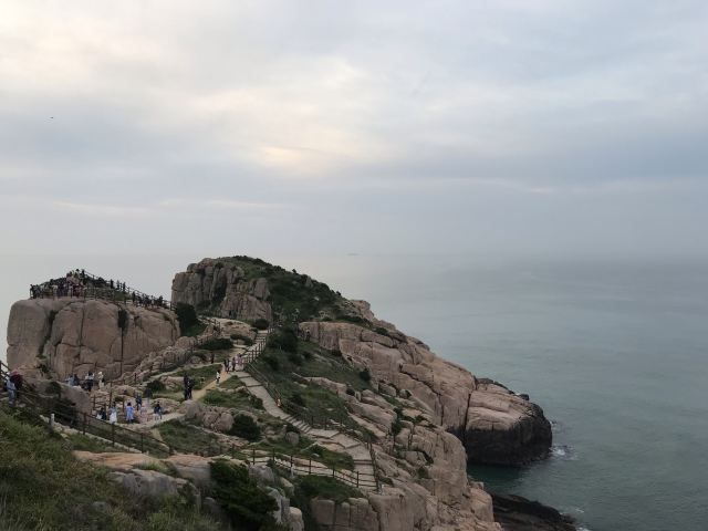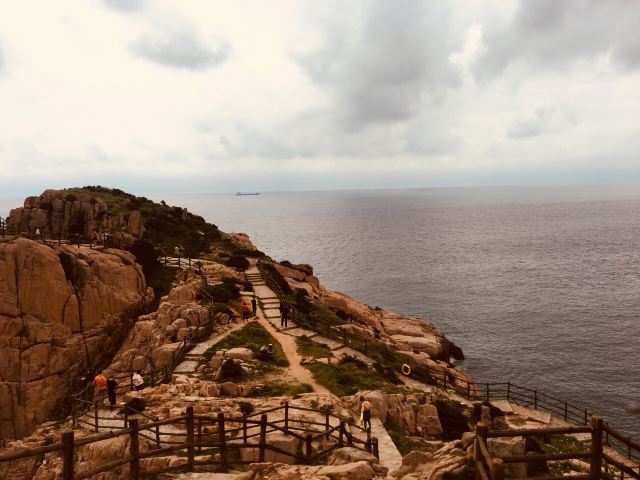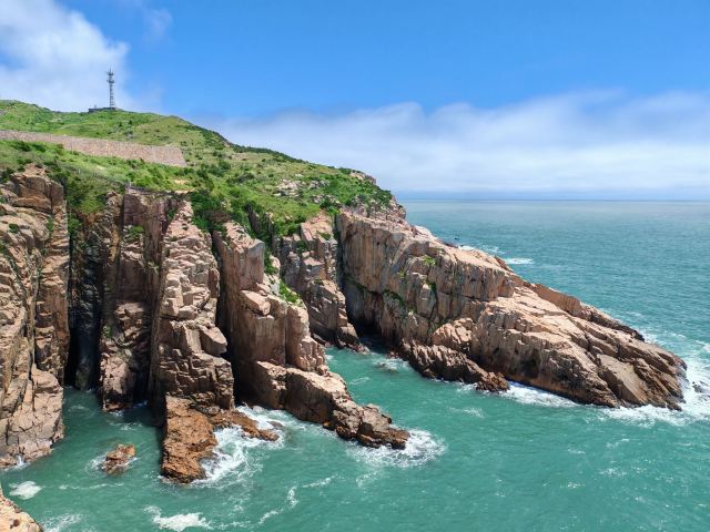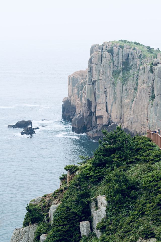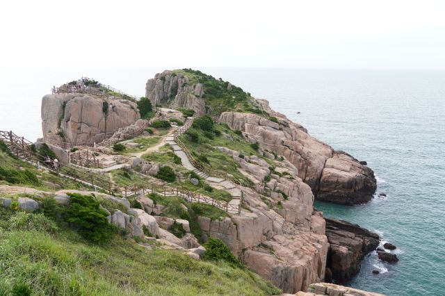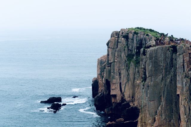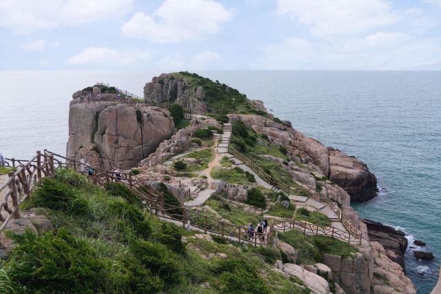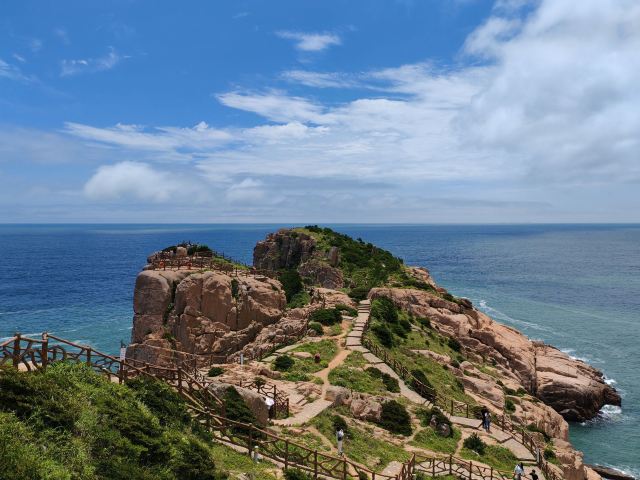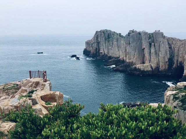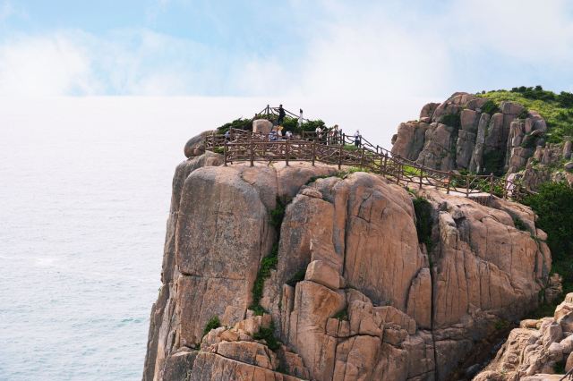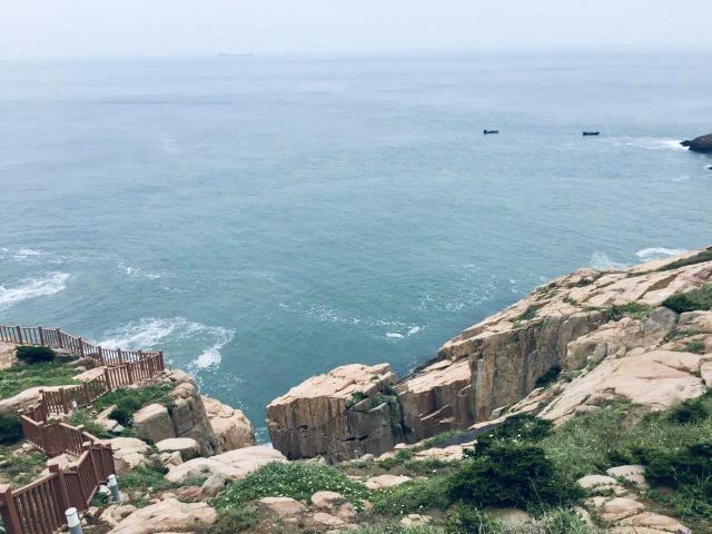 如今东崖绝壁上修建了步行栈道,游人可以走到绝壁高处,眺望大海和贻贝养殖区。沿路能看到岛上特色的各式房屋、海上零星的渔船,有时还能遇到当地居民在礁石上钓鱼、采收贝壳,很有海岛风情。