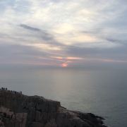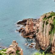 东崖绝壁位于嵊山岛的东端,高达数十米的陡崖绵延伸入大海,峭壁下浪涛汹涌,非常壮观。来到嵊山的游客几乎都不会错过这里美丽的日出,清晨四五点,喷薄而出的红日从海上升起,金色的阳光洒向海面,美得动人心魄。
