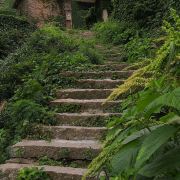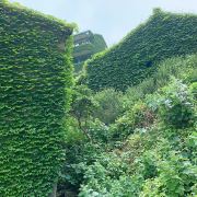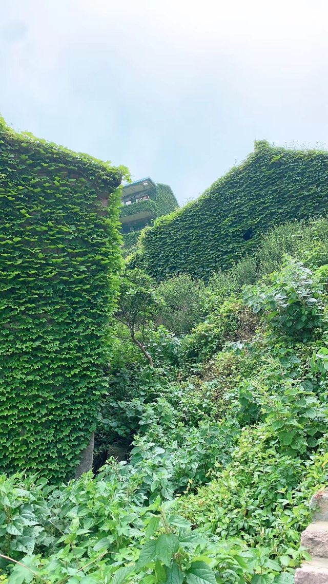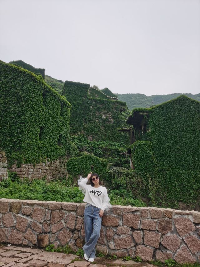 斑驳的石墙,蓊郁的爬山虎,竟意外的成了另一番景象。海边的老房,破败的美丽,荒凉的期待,爬山去看海。雨天的无人村,仙气缭绕 ,一眼望去整个村子弥漫着绿意葱茏,隐约少许神秘。