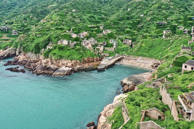 无人村位于嵊泗县嵊山岛东北面,又叫后头湾村庄。这座村庄曾有3000多人居住,原有的渔民因为交通不便,搬离后,如今人去楼空,听说在此居住了近30年的瑞安高楼人林发枕一家三代,就是“无人村”最后一批守望者。浙江最美“绿野仙踪” —舟山嵊山岛无人村