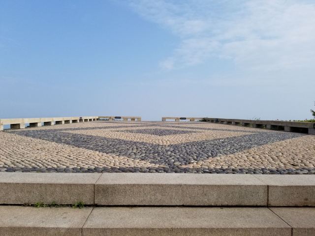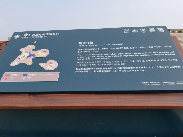 山顶的观景台和山下的灵音寺是两个分开售票的景点,人们通常说的“大悲山景区”指的便是山顶观景台。从观景台入口边走边玩去到山顶,大约半小时足矣,山顶不仅有开阔的观景平台,供你领略辽阔的海景,周围还有几处炮台遗址。此外,上山路上会经过一个不大的海洋文化陈列馆,里面展出的一些渔民画,可以花上10分钟进去逛逛。