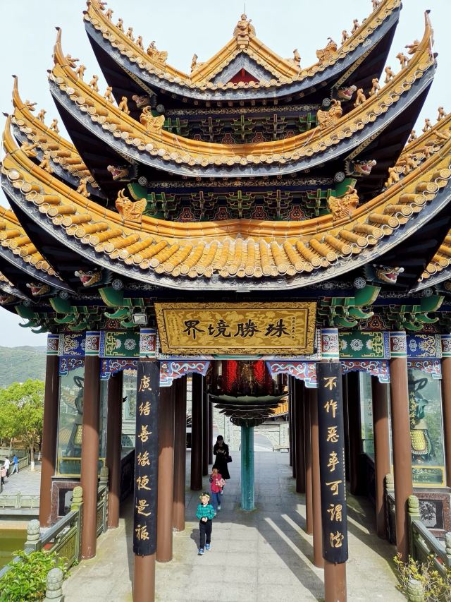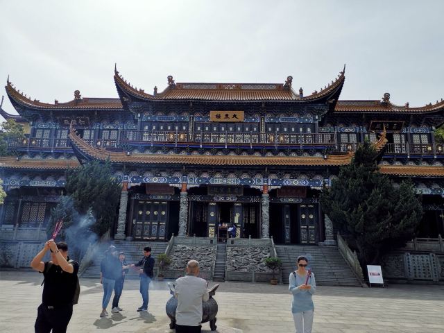 山下的灵音寺规模较大,建筑依山而建,很有层次感。每逢佛期,会有不少当地人来此烧香拜佛数罗汉,颇为热闹。