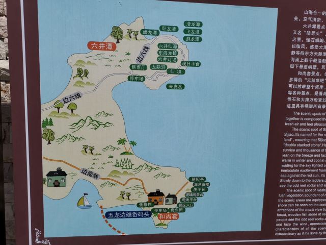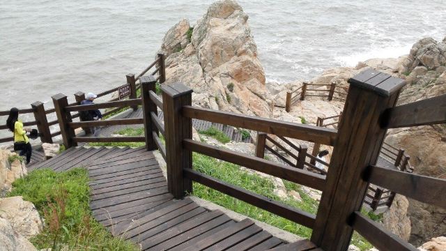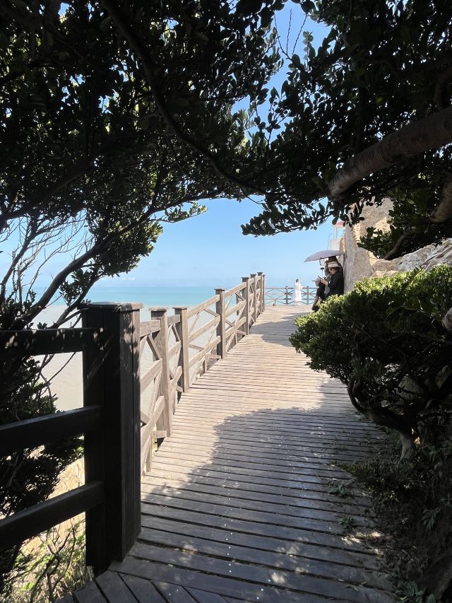 进入景区首先是一段柏油路,可以步行观赏沿途的海景,边走边玩大约20分钟。若是觉得累,也可以花几块钱坐电瓶车直达栈道起点附近。栈道走起来不算困难,一路上吹吹风拍拍照感觉不错。你也可以顺着栈道一路走道悬崖下靠近海面的地方,相对比较累。栈道沿路少有植被遮挡,尤其是临海的部分,晴天可能会比较晒,注意做好防护措施。