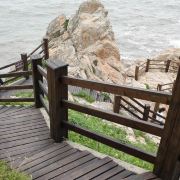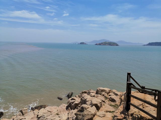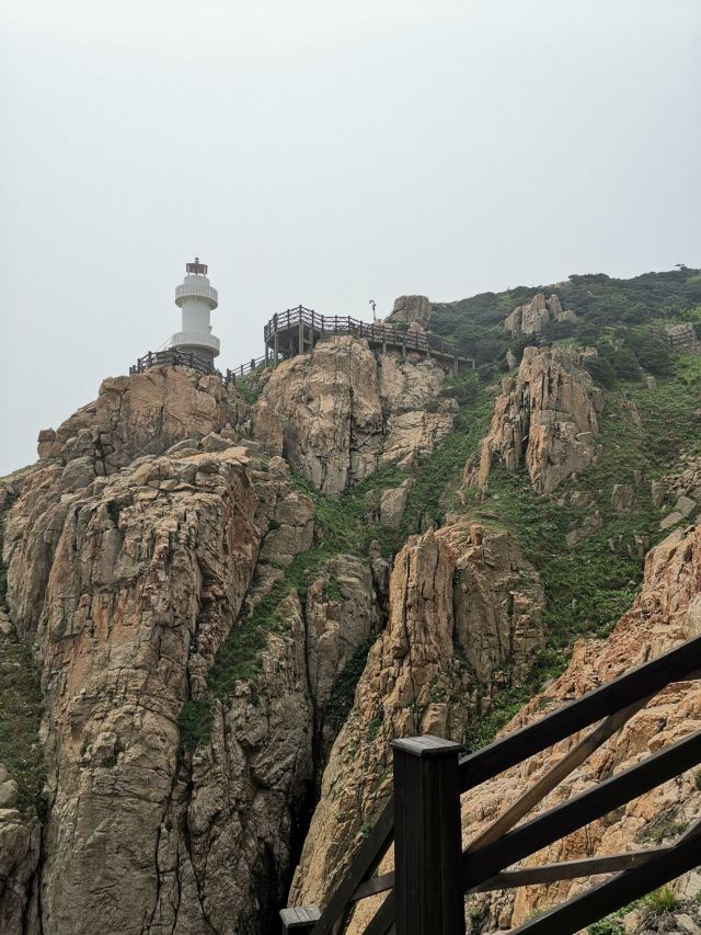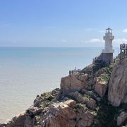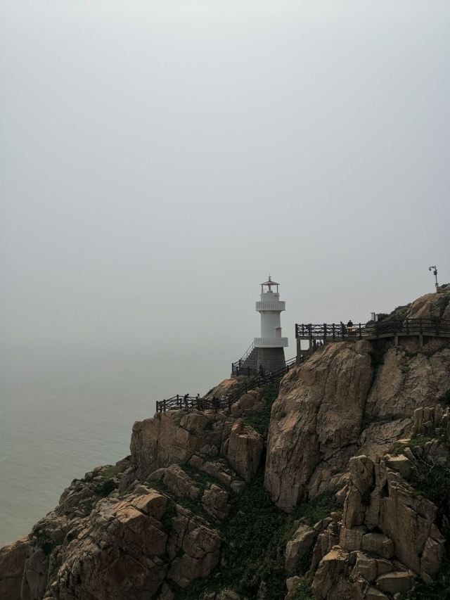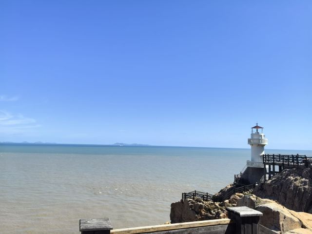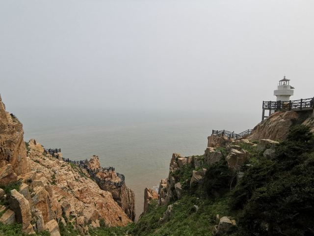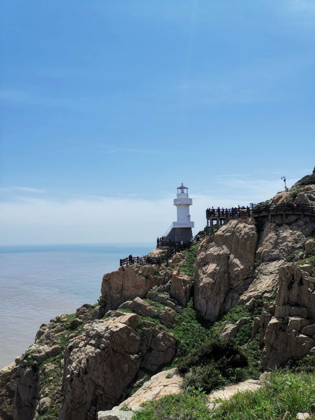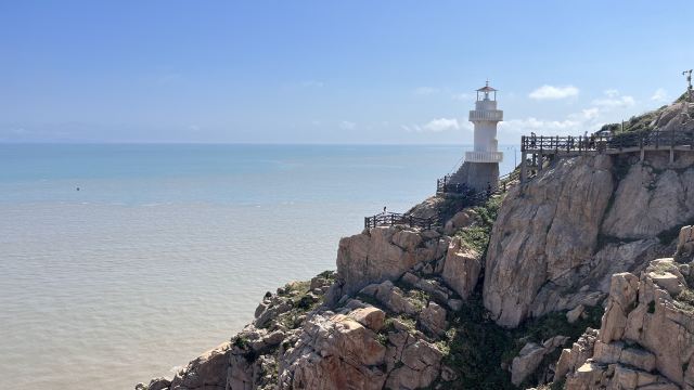 六合朝阳景区位于泗礁本岛的最东端,直面茫茫东海的礁石悬崖,是赏海景、看日出的地点。沿海建有规整的木栈道,供你漫步欣赏大海深深浅浅的蓝色,而峭壁上白色灯塔,能满足你关于海岛风情的全部想象。