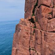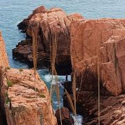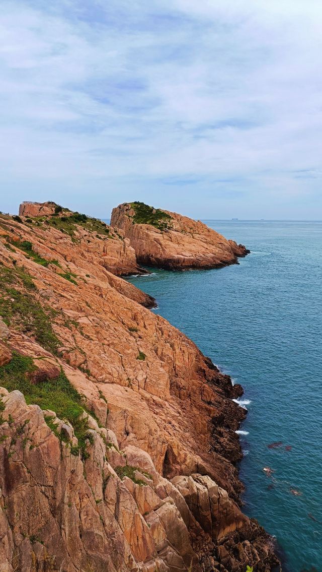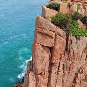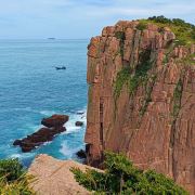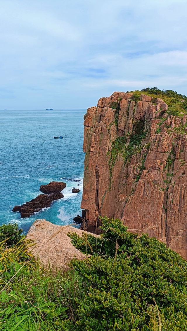 东崖,是嵊山岛上东侧一条长达1000余米的岸线,蜿蜒曲折,从海面拔地而起,如刀劈斧剁,高度均在60-70米之间,顶处可达80米以上,非常壮观。