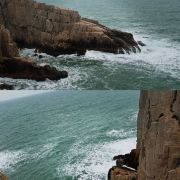 驻足东崖顶上,脚下波涛汹涌,响声如雷,令人不寒而栗;而远望则沧海茫茫,渔舟点点,令人心旷神怡;两种感觉交织一起,让人体味岛中岁月,海上心境之奥妙。