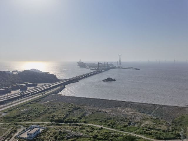 位于大洋山北端的小梅山海拔仅62.2米,一左一右两条木栈道循山势而建,仿佛两条丝带缠绕在山上。漫步木栈道,吹着海风、听着涛声、看着漫野的小花,对面的洋山国际深水港区近在眼前,井然有序的集装箱船、密集排列的船上集装箱、一字排开的港机……旁边还有冒着突突声的小渔船,这是一道不可复制的散发着海岛文艺腔的风景,世上再难寻觅。