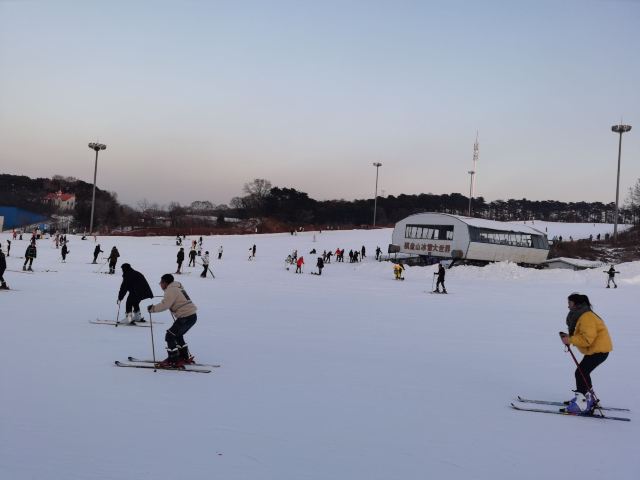 4分 满意滑雪还是值得一去的,在硕大的北方,可能是最有吸引的游乐项目之一的。几点事项可分享:费用方面,门票不算贵,分日场,夜场,午夜联场,根据自己需要,一百块钱多点,然后包含雪具,是雪鞋、雪板和雪仗。其他的雪服、雪镜、头盔等等需要自己花钱租,不贵,但是基本也可以不用,注意自己穿一件防水的冲锋衣和裤子,一定一定记得自己买一滑雪手套,带一口罩就行,其他的没太大必要。还有就是雪具的押金一百,出来后可以退。还有存物柜10元,两个人用一个都可以。里面有饭店,也可以自己带一点。滑板分双板和单板,双板的人比较多,相对容易,单板比较难,但是刺激。初学的大多数还是双板吧,想挑战一下就单板,也挺有意思。里面最重要的最贵的收费就是请教练,如果第一次玩,大多数还是要教一下的,一对一两百四,一对二四百样子,单板的稍贵一点。从你进门开始,教练就盯着你了,各种帮你找柜子,帮你换鞋子,当然最后就是让你请他。一对二差不多了。到了雪地里玩的很嗨,下来五分钟,上去半小时,当然有魔毯也就是电梯把你送上去,初学肯定要摔的,但是不会太疼,大多数屁股遭殃一下,记住尽量不要手先着地就行。分享了这么多,祝你们玩的愉快