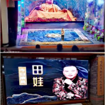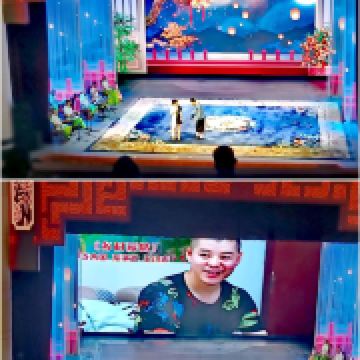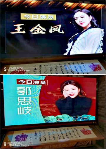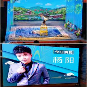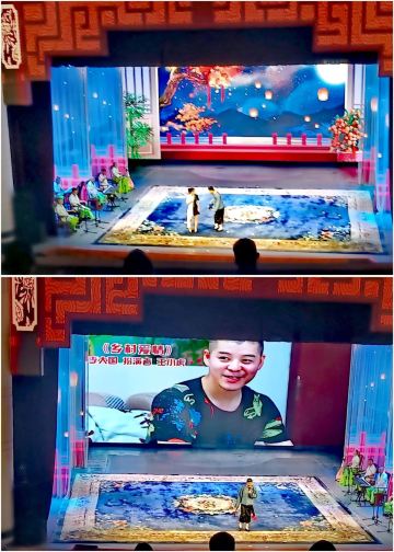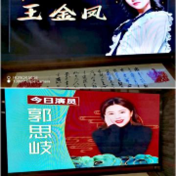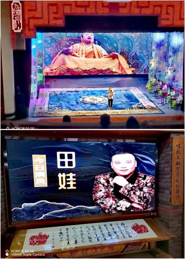 ②大厅主屏:滚动播放着今天上阵演出的演员,有王小虎(《乡村爱情》里饰李大国,赵本山第13号弟子)、田娃(《乡村爱情》里饰王木生,赵本山第34号弟子)、郭思岐(田娃的妻子,也是二人转搭档,原名郭丽颖)、杨阳/可芯(新人搭档,资料不详)、宋冠澎(《乡村爱情》里饰顺子,赵本山58号弟子)、王金凤(宋冠澎的妻子,也是二人转搭档)、王龙(赵本山第43号弟子)、六龄红(也称“六岁红”,因6岁开始学唱戏而得名,赵本山第48号弟子,名字叫赵志东)。