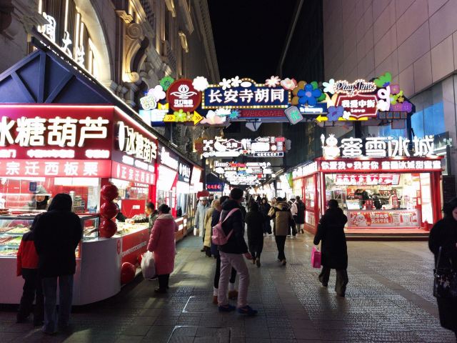 🏬踏入官局子胡同,青石板路、中式灯笼与复古招牌勾勒出盛京旧影;转角遇见安踏店铺的龙形装置、李宁的国潮橱窗,现代艺术与传统文化碰撞出火花。沈阳商业城的欧式建筑在夜色中泛着暖光,与胡同里的非遗糖画摊相映成趣,一步一景皆是“古今对话”的生动注脚。