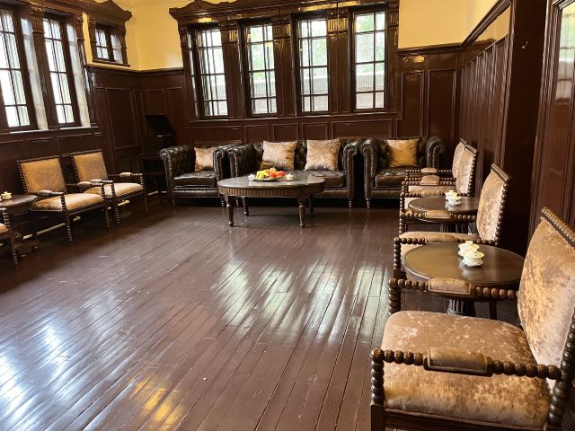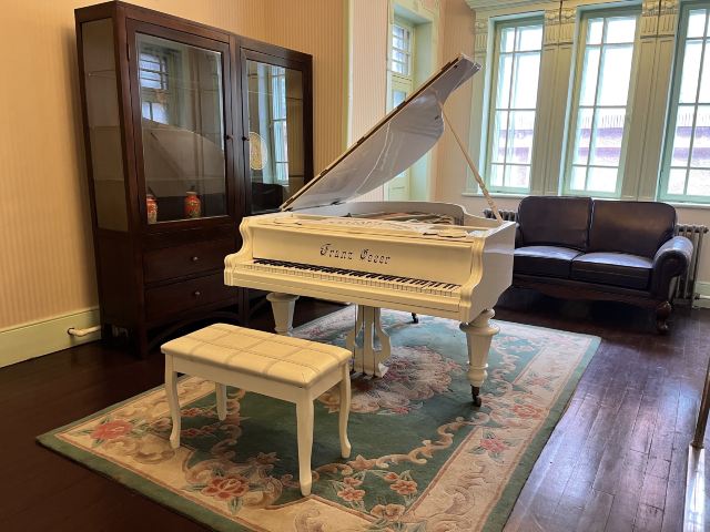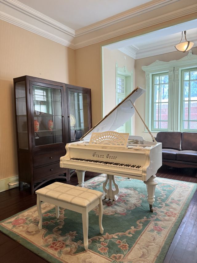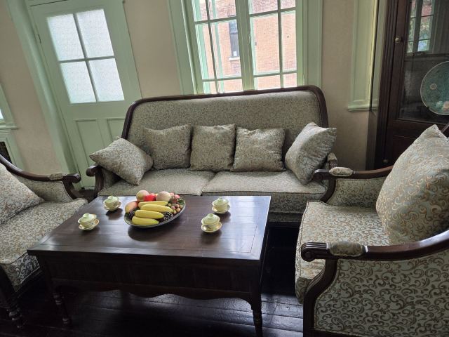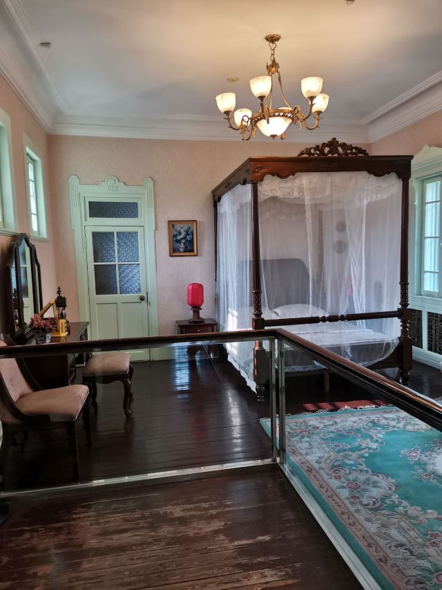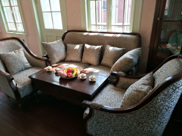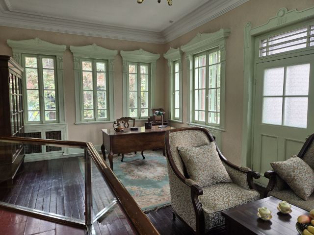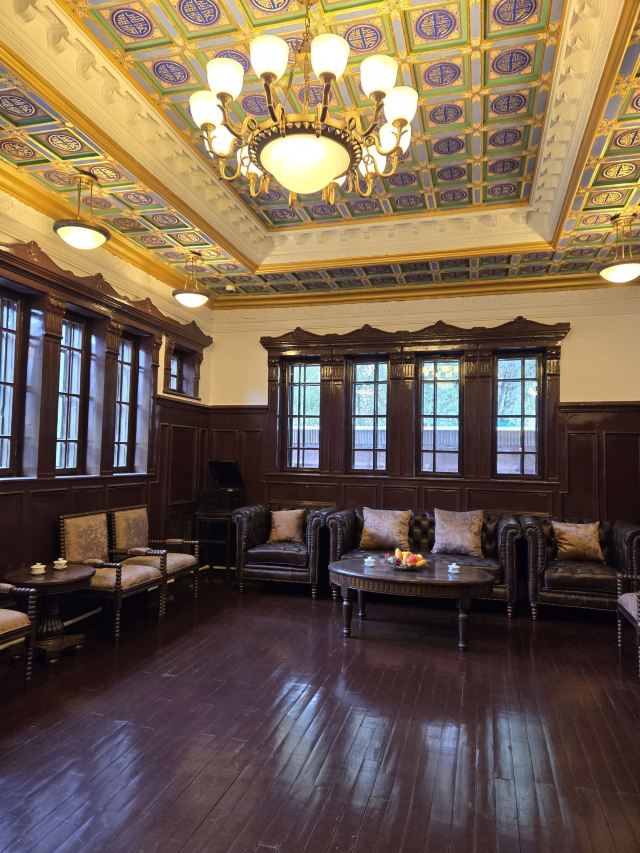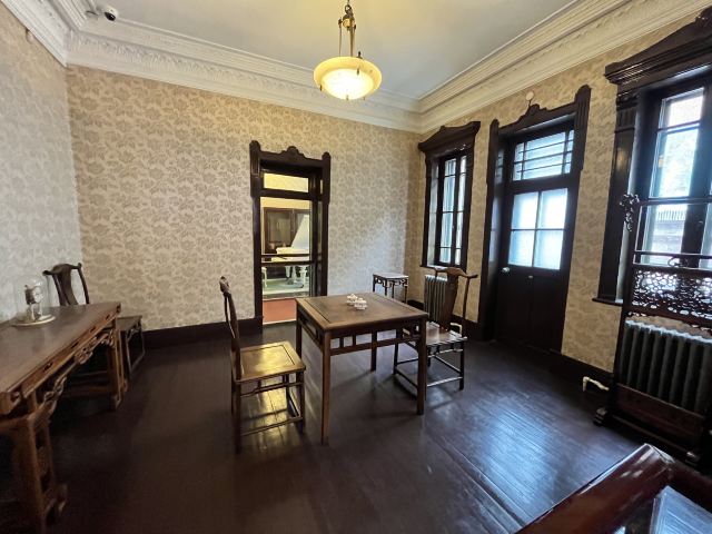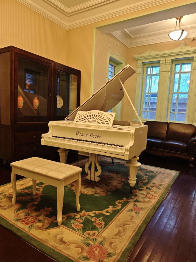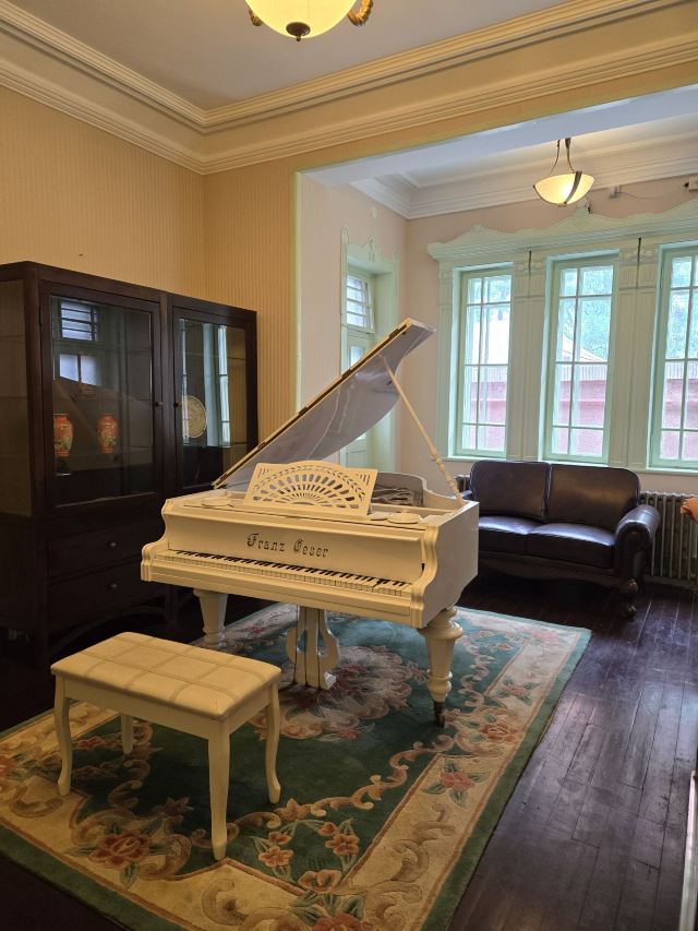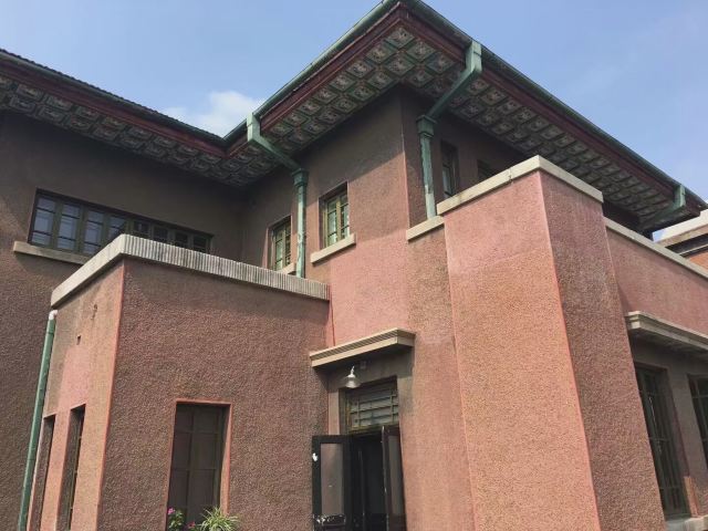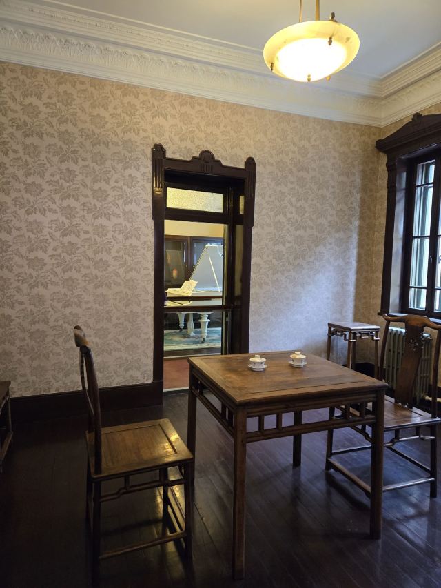 🏠一幢日式二层小楼,建筑面积 400 多平方米,楼体赭石红,具有典型日本建筑风格,又融入欧式风情,内部既有中国传统描金彩绘,也有欧式雕刻廊柱。一楼设接待室、舞厅、餐厅等,二楼设会客厅、起居室、琴室、卧室、卫生间等