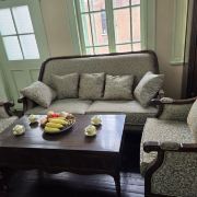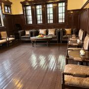重修后的“赵一荻故居”四周围上了新改造的围墙,推开大铁门,满院花香,院内墙上面摆放着盆景,一楼的接待室、舞厅、餐厅等,二楼的会客厅、卧室、琴房、起居室、卫生间等装修别致,令人置身其间,仿佛感受到了赵四小姐的音容笑貌。会客厅顶棚画着《飞鹤吉祥图》、舞厅画着辉煌的金顶彩绘,令人赏心悦目、美不胜收;室内的法式家具件件可称作艺术精品,沙发、桌椅、床等选料上乘、做工考穷,尽显豪华、典雅之美,体现了赵一荻求学上进、追求浪漫生活情趣的个性,如实地再现了赵一荻与张学良共同生活的场景,见证了他们动人的爱情故事。