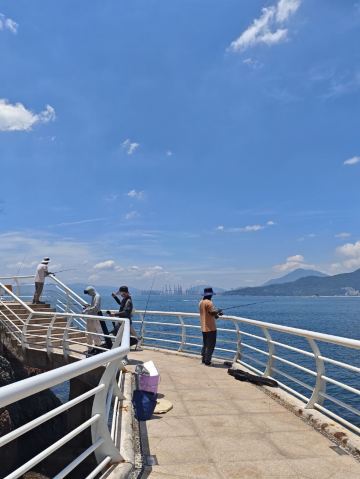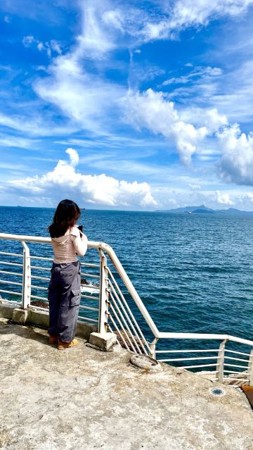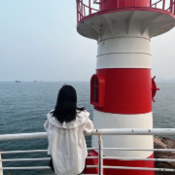 终于走到栈道尽头,红白相间的背仔角灯塔出现在眼前,在蓝天大海的衬托下,显得格外醒目。走近看,灯塔的建筑细节满满,每一处线条都恰到好处。在这里,我邂逅了绝美的日落,金色余晖洒在身上,暖在心底,氛围感拉满,真的浪漫到失语!