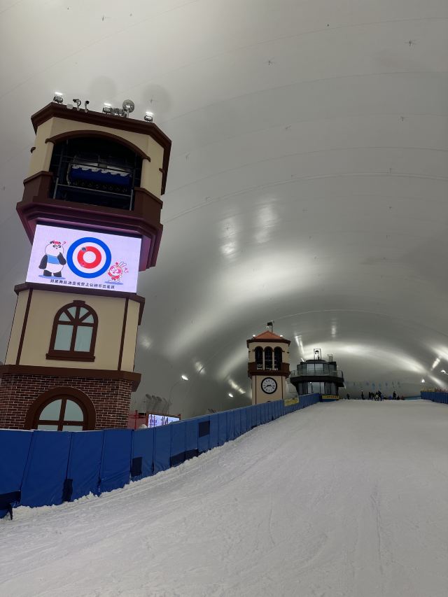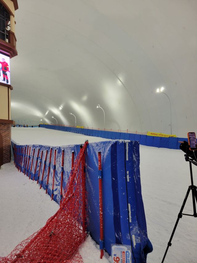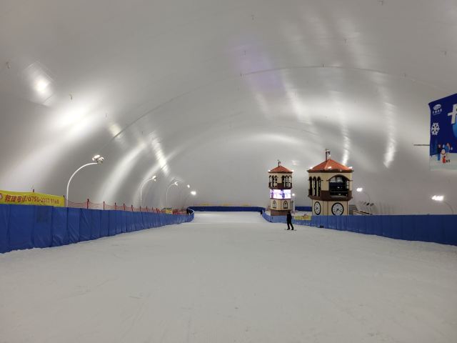 里面只有一个坡道。不长,坡度也比较很缓,特别适合新手。当然刚开始总要摔个几回,所以穿厚点不怕摔。工作人员很好,你摔倒了站不起来都会过来扶你,你不懂怎么滑,他们也会教你。