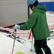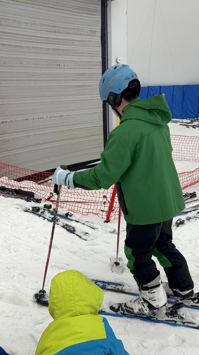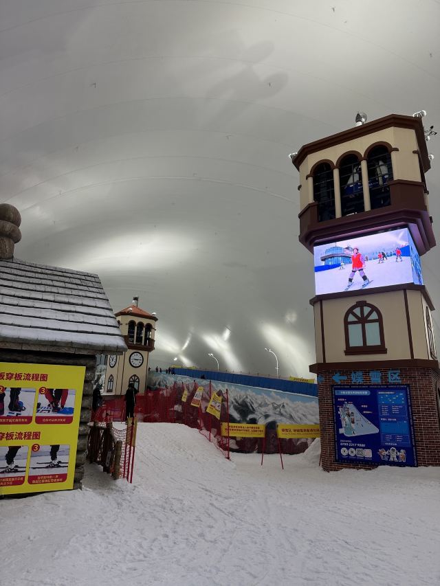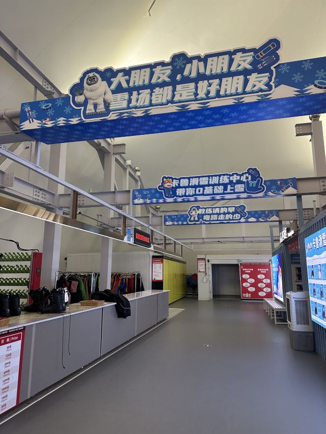 到了后先在门口验券换卡,然后进去,会有工作人员指引,寄存东西,领衣服头盔和雪具。新手建议选双板,有滑雪基础的可以选单板。