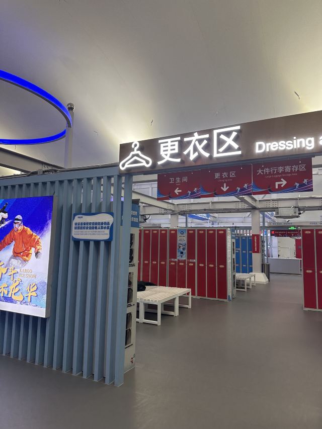 有专门一个区域换衣服。一定一定要穿暖和一些,一定一定要自备保暖手套,怕冷的最好再备个口罩。然后就进滑雪场了。虽然只有零下6度,刚进去感觉不是很冷,但过了半小时后就开始觉得冻到不行了。