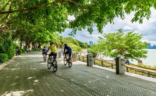 深圳湾公园是指靠近深圳湾的超大规模的滨海公园,包括红树林海滨生态公园、追风轮滑公园、日出露天广场等多个区域,海对面就是香港米铺自然保护区。沿海岸线长约10.5公里,总面积约128.74公顷,是深圳市的密集滨海休闲带。散步或者骑单车游览都是很不错的选择,是市民休闲的好去处。