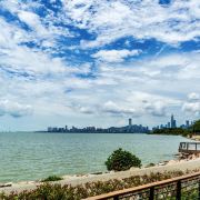 天气晴好时,海水与天空在远处连成一线,视野极为开阔,尤其在日出日落时分,霞光染红海面,金色涟漪与城市灯光交相辉映,浪漫感十足。海黄昏时分可欣赏夕阳沉入海平面,晚霞将海水染成橙红。