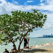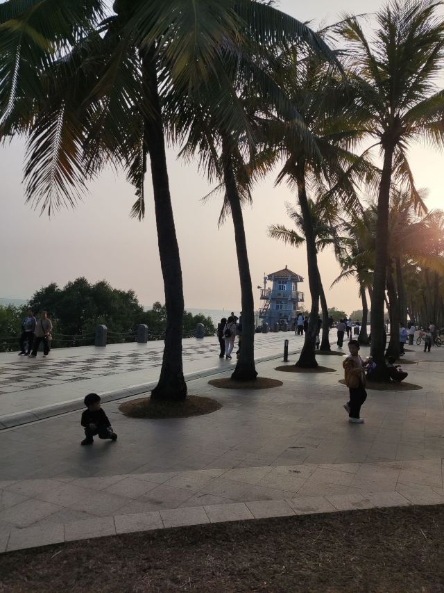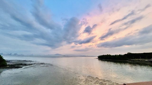 日落时分特别治愈,整个海面都是金红色的。周末人略多,但往红树林方向走就安静了。