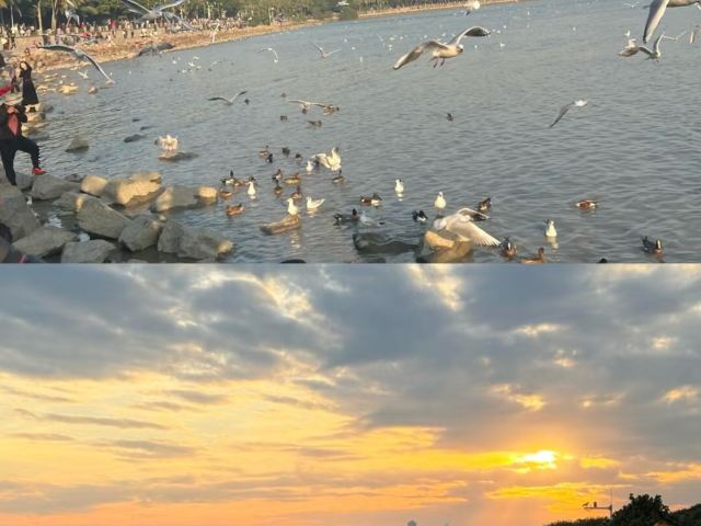 5分 超棒春节期间的深圳湾公园,海鸥的年度限定演出非常精彩。下午4点,从深圳湾公园地铁站D2口走出后,光线温柔,海鸥在滩涂上盘旋飞舞,超美超震撼。