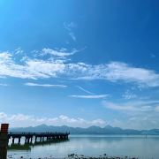 4分 满意深圳湾公园周末,大桥很清晰,可惜疫情期间没啥车。Rain cleared the sky, Sunshine。喝个椰汁西米露
