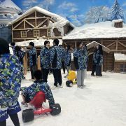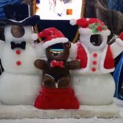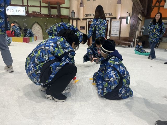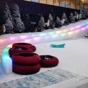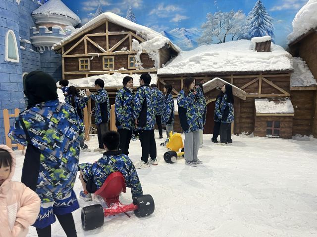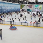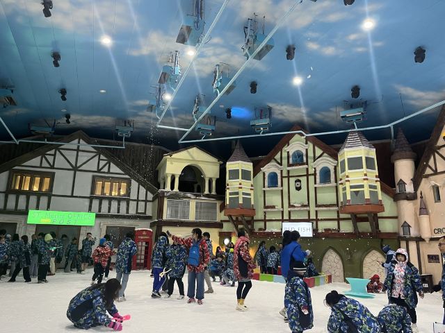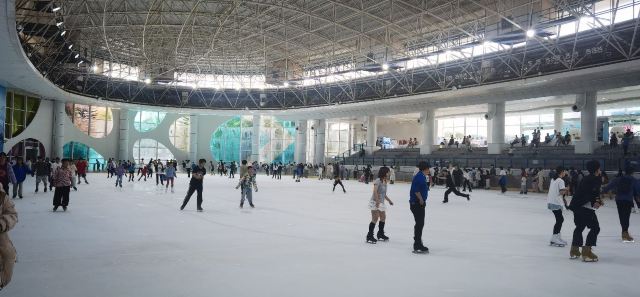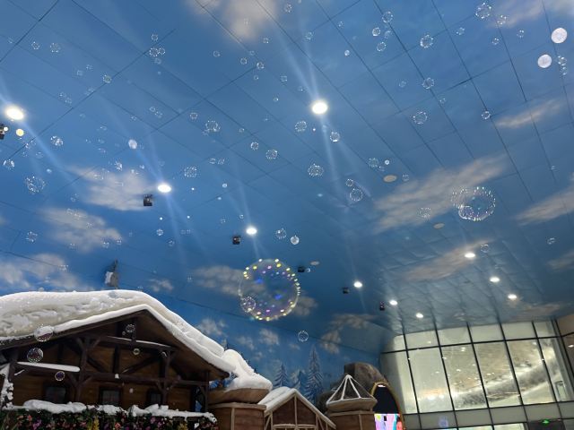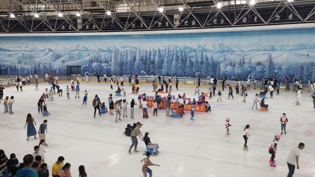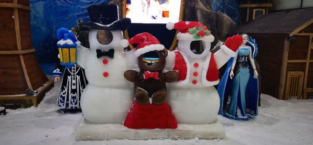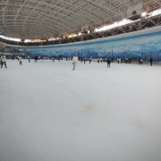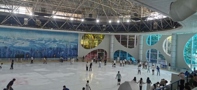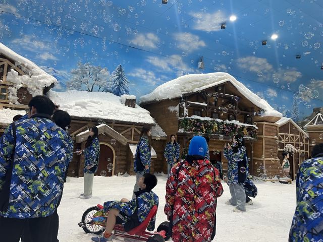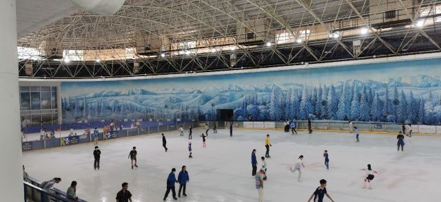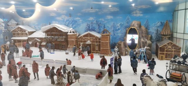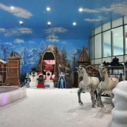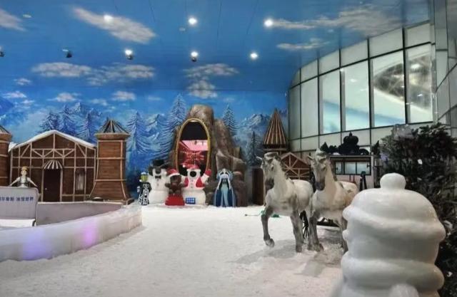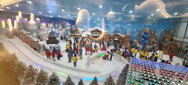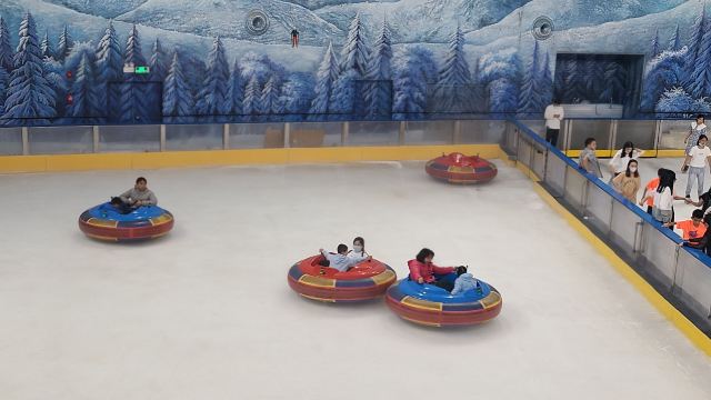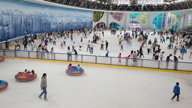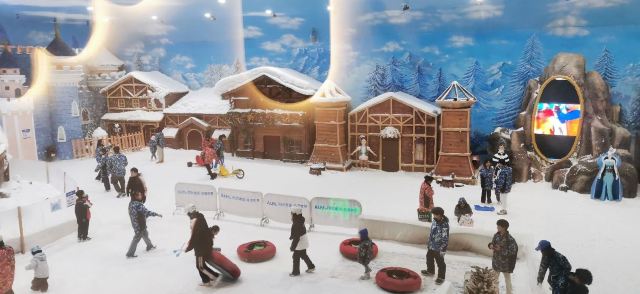 冰雪世界主要分三大部分,冰雕区、溜冰区、滑雪区。冰雕区五彩斑斓,一座座透明冰雕在景观灯的照耀下绚丽夺目;溜冰场犹如天然的冰湖,游客可尽情开展冰上舞蹈、花样滑冰等运动;在滑雪区可尽情速度与激情的乐趣。