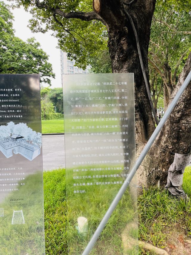 如今的古城区尚存有南头古城-南城门和东城门,夹在两旁的民居间。漫步其中有文天祥祠、新安烟馆等历史遗迹。南门外还有着一座南头古城博物馆,这里展示了许多文物,静静诉说着古城昔日的辉煌。