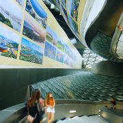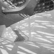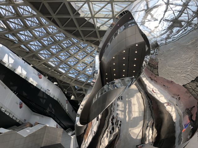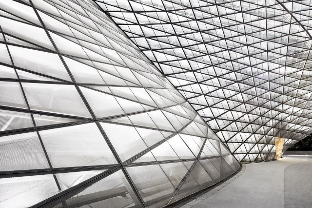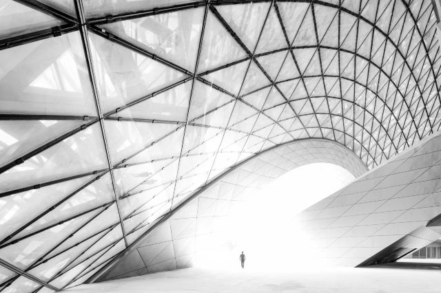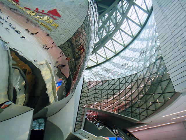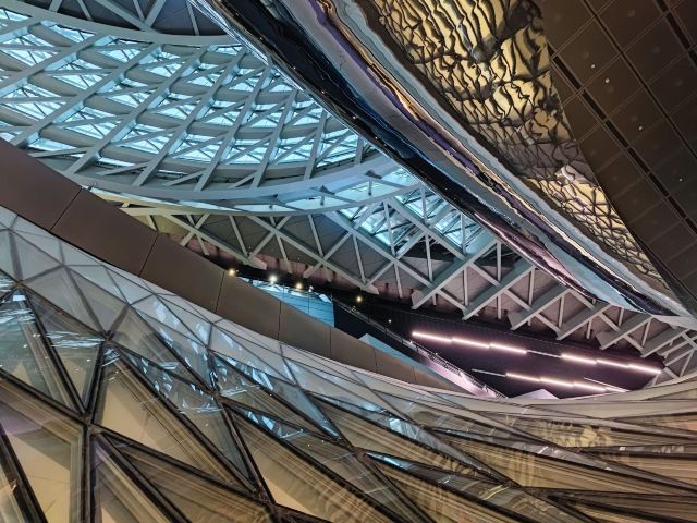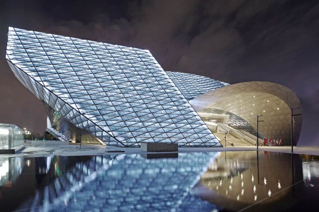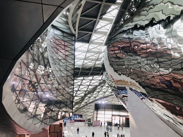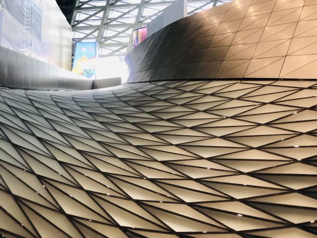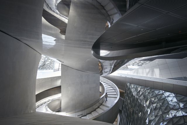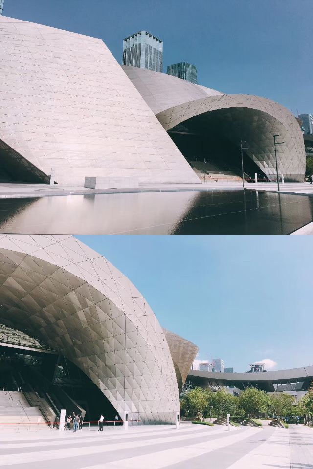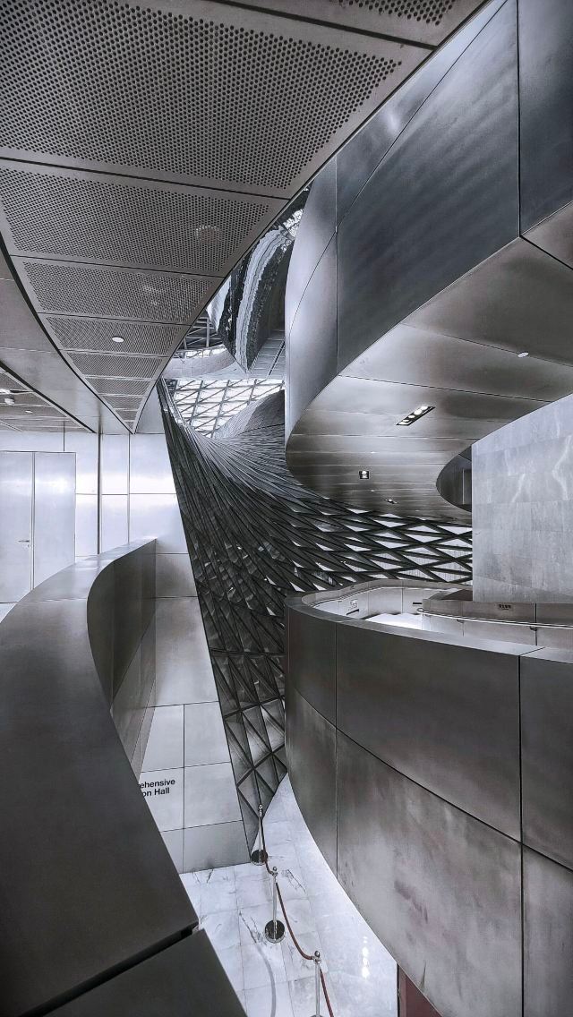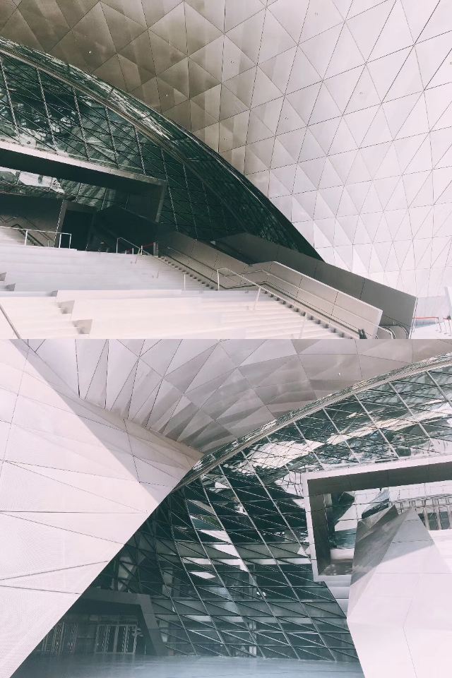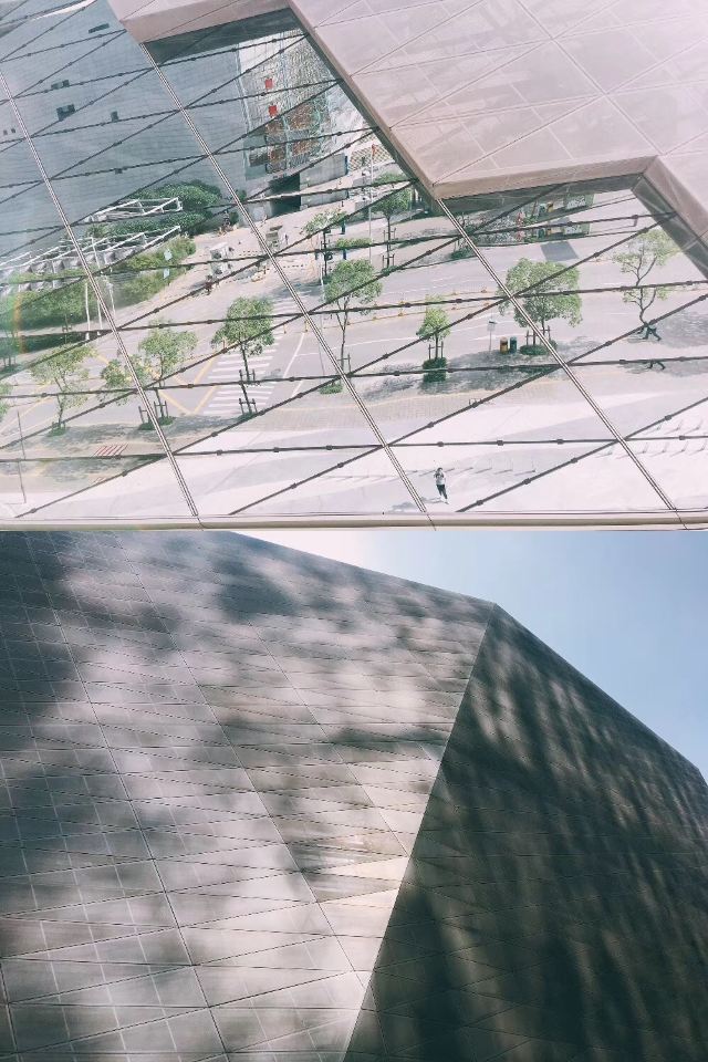 深圳市当代艺术与城市规划馆由相互独立又有机统一的两部分组成,运用肌理、切割、裂变、虚空等设计理念打造的建筑外观,结构复杂、风格大胆,充满未来感,给人极强的视觉冲击。而干净空旷的内部空间,加上光与影的层叠交错,让人随手抓拍都像是艺术大片。
