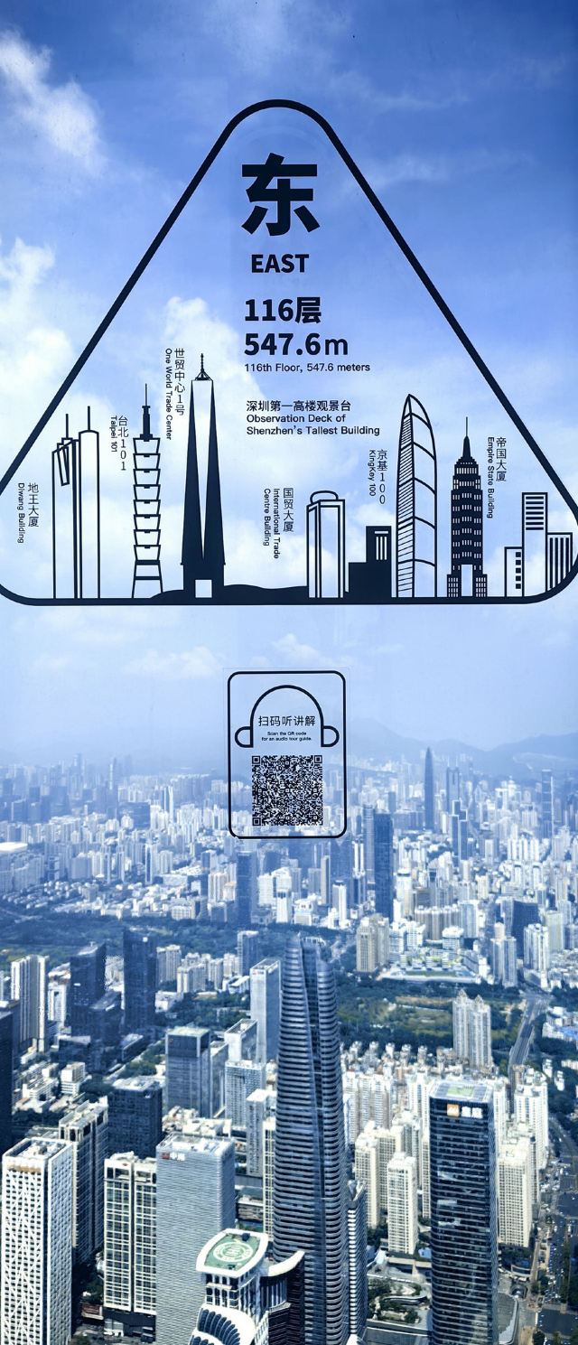 平安金融中心是世界第五、中国第二高的摩天大楼。其深圳平安金融中心云际观光层也叫“FREESKY云际观光层”,位于世界第五高楼平安金融中心的第116层,傲居深圳新地标547.6米海拔高空,拥有悬空玻璃观景台,可360°鸟瞰深圳四方八面不同景观与城市风貌。涵盖透明观景区、VR互动体验区、镜面迷宫、光影隧道、深圳奇迹等多个功能空间。以先进的智能多媒体设施,展示具有丰富深圳特色的年轻文化,展现深圳改革开放以来的蓬勃发展,可观摩深圳的历史变迁与城市风貌。游客可乘坐多媒体观光电梯,只需约55秒即可到达116层547.6米云端,以360度的视野,尽收深港两城风景。感受阻尼器黑科技之光,体验极限绿景拍智慧之美,诚邀四海宾朋登上深圳新高度,远眺近览山野与城市的俏丽盎然,将华南版图尽收眼底。
