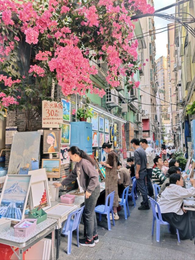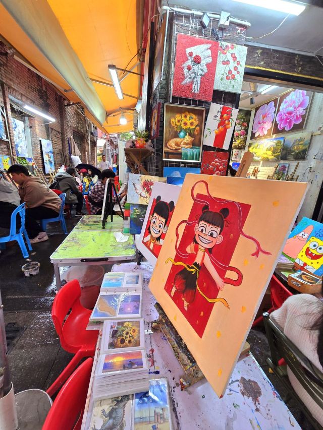 4分 满意第一次去大芬油画村 很多作品可以看 可以买 可以订做 有不少的店可以画画 有做瓷器的 一般画画30人民币起跳 有不少特色涂鸦打卡的地方 喝的也有瑞幸 一些咖啡店 范围很大半天也看不完 建议不要正午过来 有点热 下午4:00左右可以过来 如果要画画就要预备多一些时间了 如果不来过还是建议可以过来看看