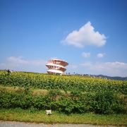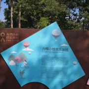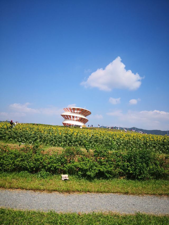 欢乐田园观景台位于光明区光明小镇北部,为鸟瞰欢乐田园全景提供颇佳的角度和高度。登上观景台,站在欢乐田园视角,可欣赏到稻田艺术景观、金黄油菜花、浩瀚向日葵、娇憨的荷花等四季不同的田园风光。秋风中的稻田麦浪,不同种类共奏的和谐田园之歌,你都将尽收眼底。