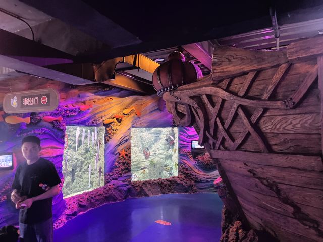 展馆内部设有十大主题展区,每一个展区都精心设计,带领游客穿梭于不同的海洋环境之中。三大精彩节目轮番上演,为游客带来震撼的视觉盛宴。特别值得一提的是长达50.089米的超长海底隧道,让游客仿佛置身于海底深处,上万条鱼儿在身边穿梭,营造出一场生动的海底奇观。