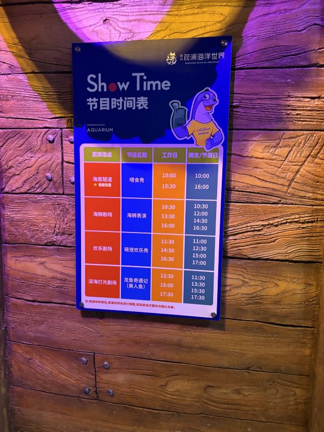 4分 满意顺时间基本上都唔会错过任何一场表演,喂动物那边的厕所很脏,需要改善。职员整体上都很热情,入口同出口唔同一个点,出口那边有个波波池,上楼梯有类似4D电影,要收费,不过比外边便宜。场内亦都多打卡位。