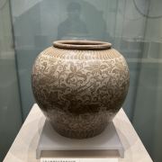 最令我惊叹的是负二层的"圃园石记"石刻展,北朝时期的双佛石造像巧夺天工,佛像衣纹流畅,面容沉静,斑驳的锈迹诉说着千年沧桑。在"瓷韵华章"展厅,金代的瓷塑工艺品憨态可掬,让人忍俊不禁,原来古人也爱收藏"手办"。